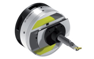 U-Comax heads are intended for use on transfer machines, operating units, and special machines. The control of the advancement of the tool slide, even during rotation, is controlled by a U-Drive motorization unit mounted at the rear of the spindle and managed directly by the CNC of the machine tool. U-Comax heads are used for internal, external and sub-quadrant brazing, internal and external turning, channels, phonographic spirals, cylindrical and conical threads, conical reamers, even variable, concave and convex radii, by interpolation with the other axes of the machine.